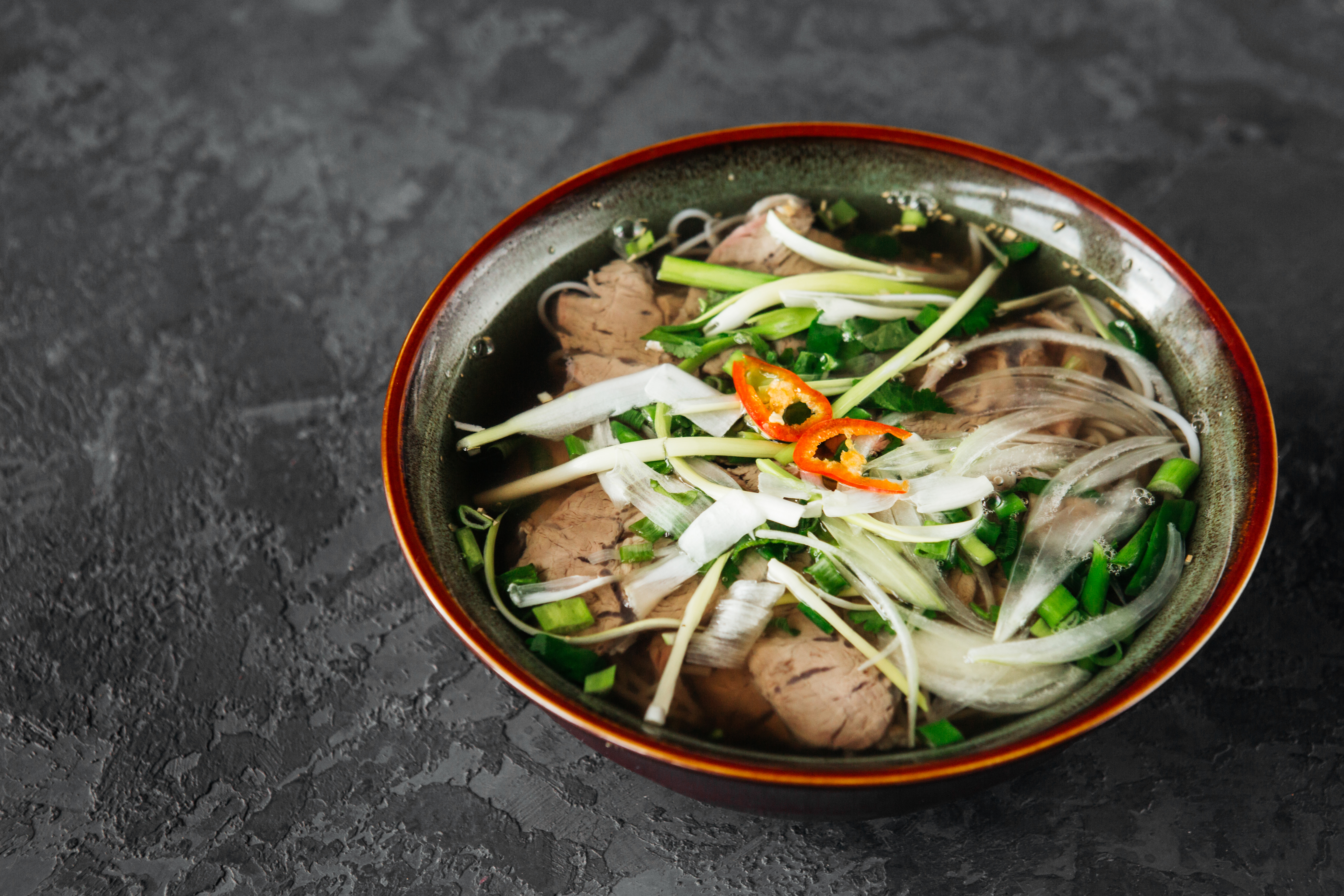 Pho (pronounced "fuh") is a type of Vietnamese soup that usually consists of bone broth, rice noodles, spices, and thinly sliced meat (usually beef). Though “pho” technically refers to the noodles and not the soup itself, most people consider the dish a singular unit.